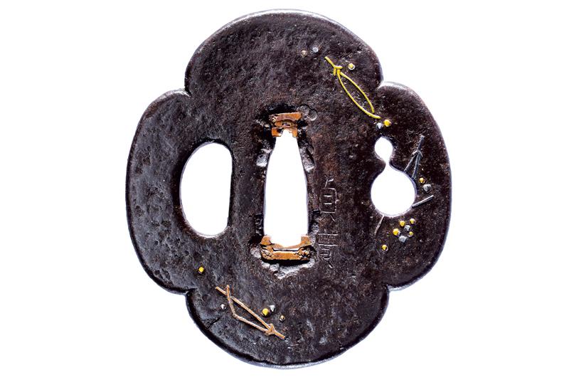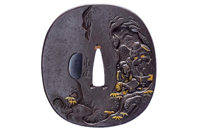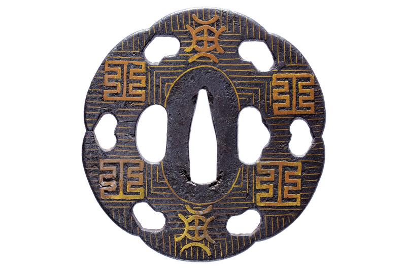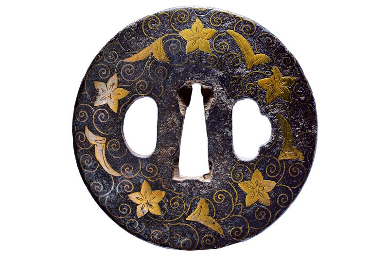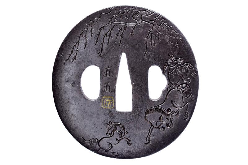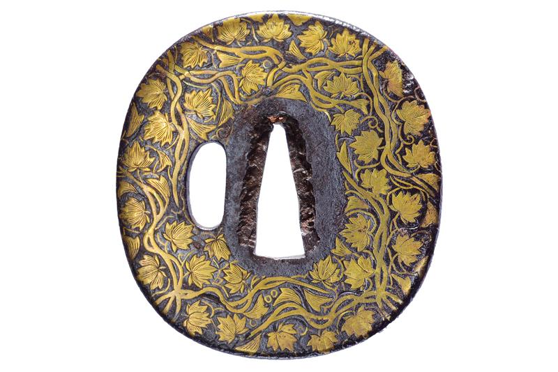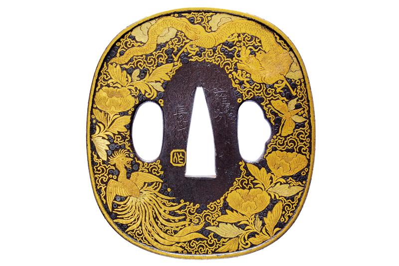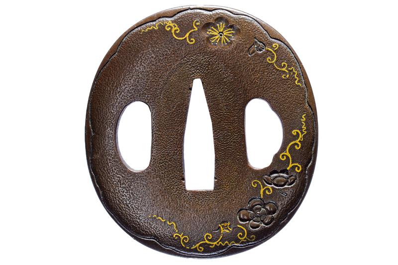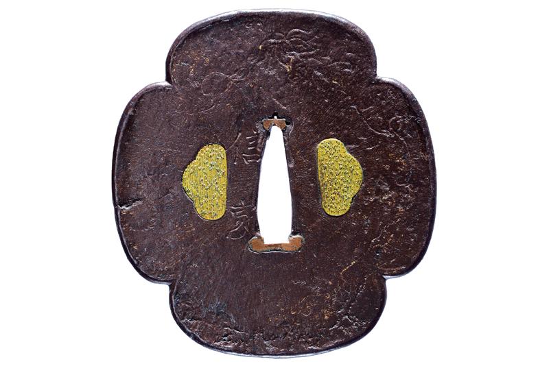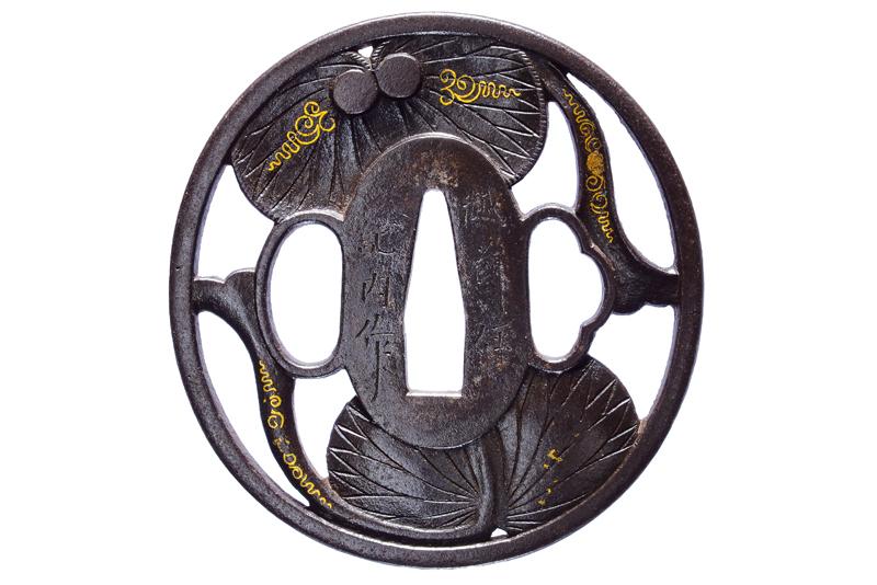| 46 | TSUBA FIRMATA NAOMICHI, CON KAKIHAN IN ORO | Giappone, Periodo Edo (1603-1867) | |