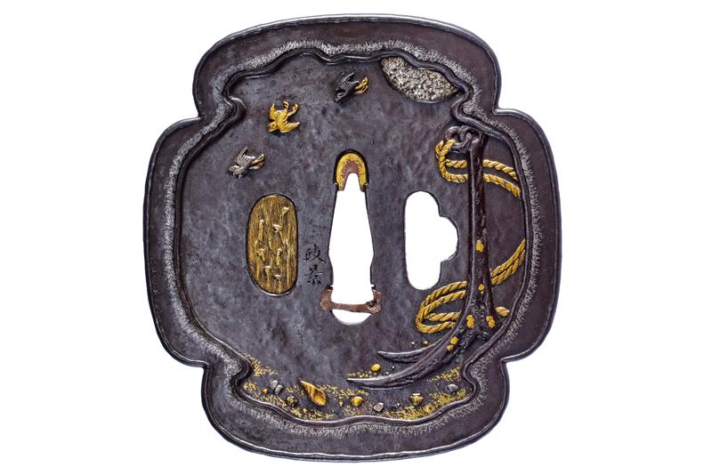 | | 21 | BELLISSIMA TSUBA FIRMATA MASANAGA, CON KAKIHAN | Giappone, Periodo Edo (1603-1867) | |