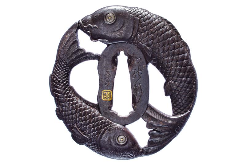 | | 47 | TSUBA FIRMATA SHIGENAGA, CON KAKIHAN | Giappone, Periodo Edo (1603-1867) | |