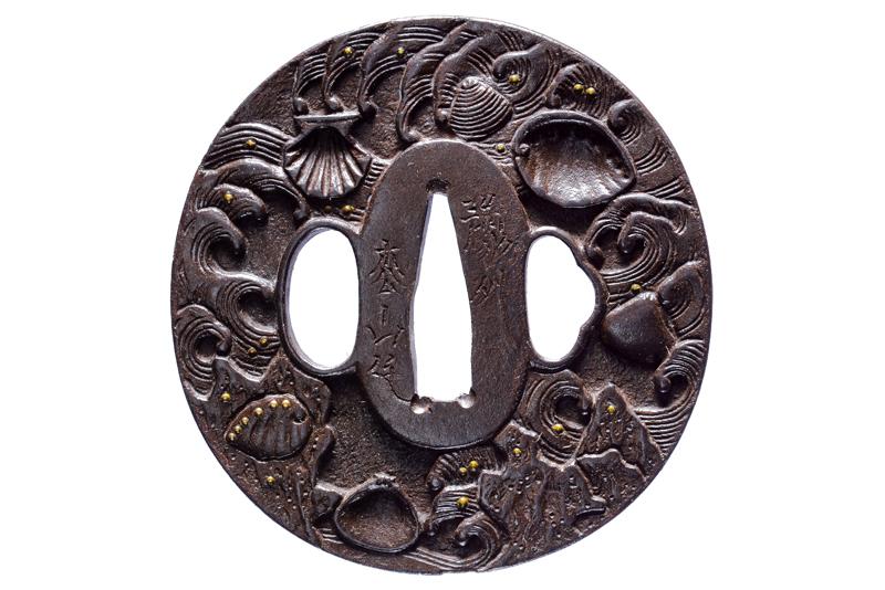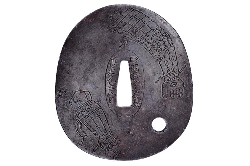 | | 263 | INTERESSANTE TSUBA FIRMATA NYUDO SOTEN SEI - KOSHU HIKONE JU SOHEISHI | Giappone, Periodo Edo (1603-1867) | |