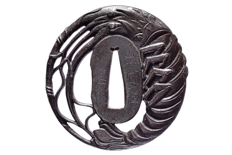 | | 44 | BELLISSIMA TSUBA FIRMATA "HOZUI"(?) DELLA SCUOLA TETSUGENDO | Giappone, Periodo Edo (1603-1867) | |