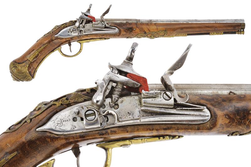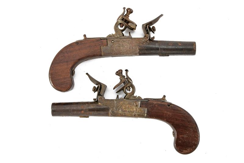 PAIO DI PISTOLE A PIETRA FOCAIA DA VIAGGIO