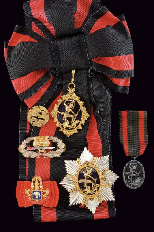 RARO INSIEME DI UN PUGNALE MOD. 1932 MVSN IN CASSETTA CON ORDINI E MEDAGLIE