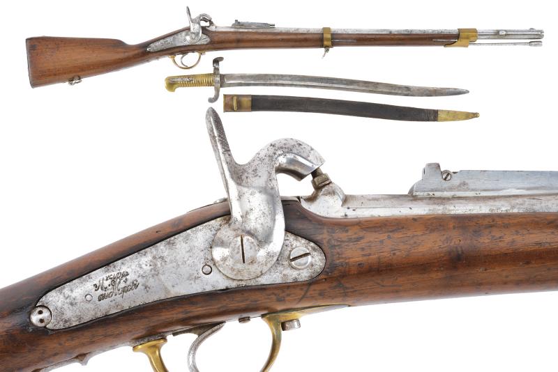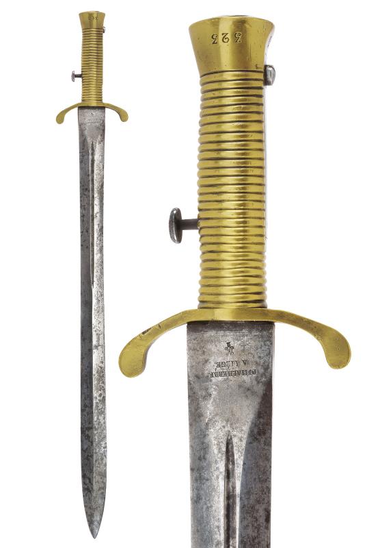 | | 865 | MAZZAGATTO A PIETRA FOCAIA CON BAIONETTA A SCATTO DI BOLTON | Inghilterra, primo quarto del XIX Sec. | |