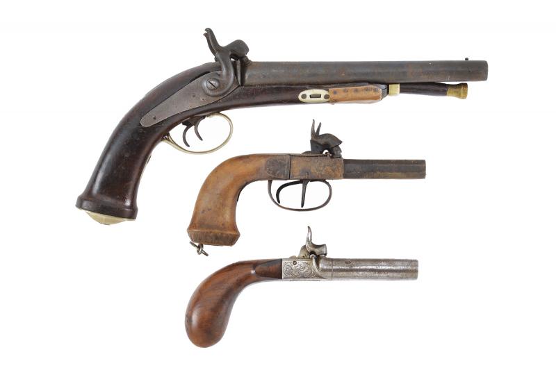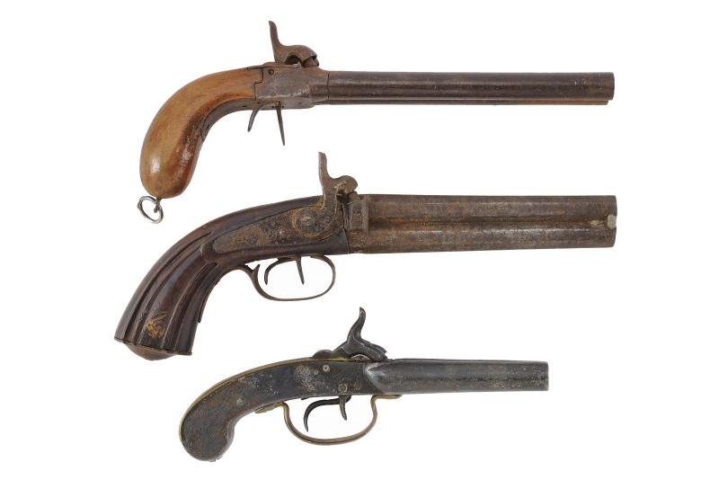 | | 847 | LOTTO DI 3 PISTOLE A LUMINELLO A DUE CANNE | Europa, Metà del XIX Secolo | |